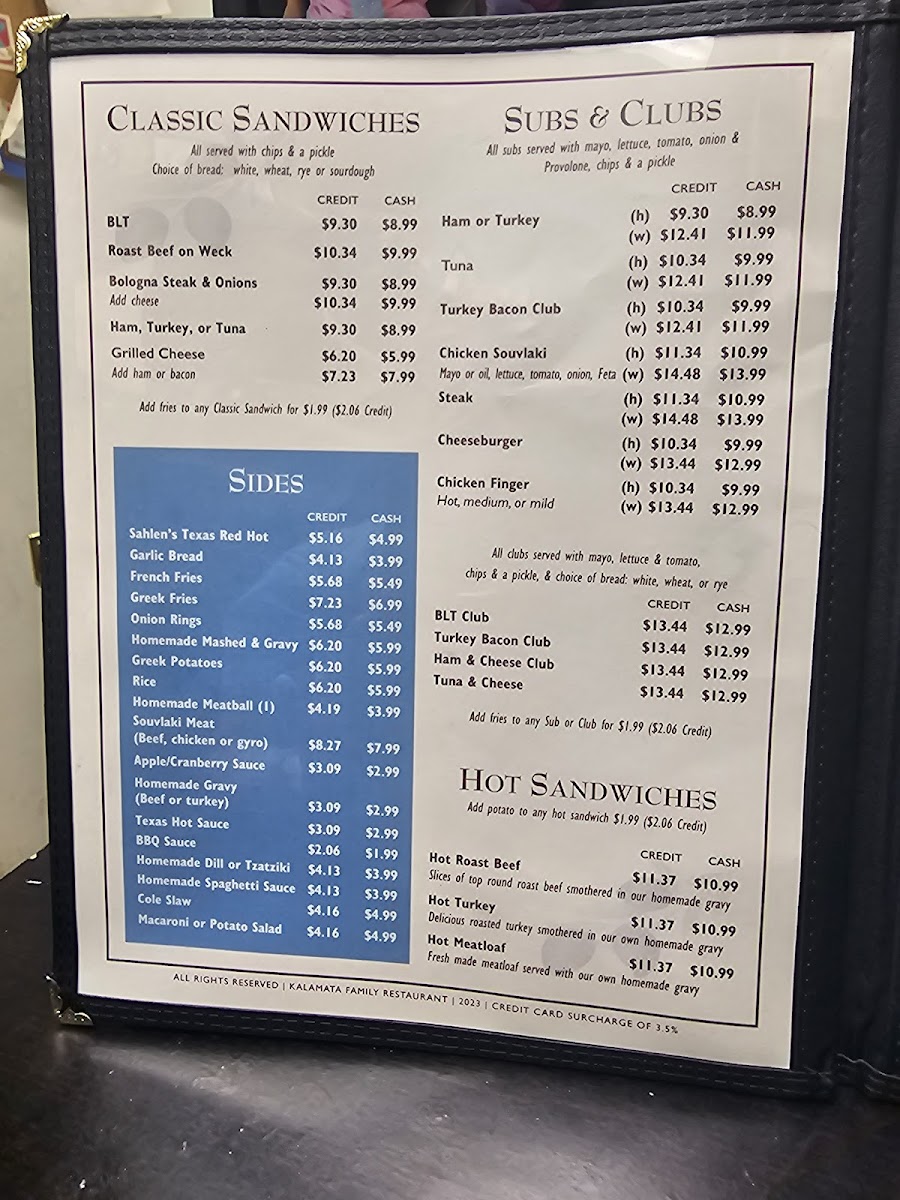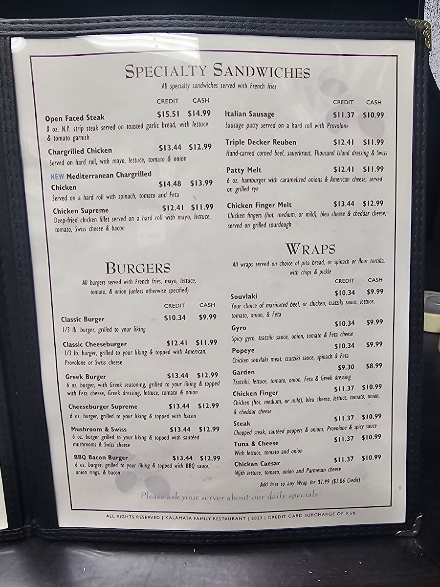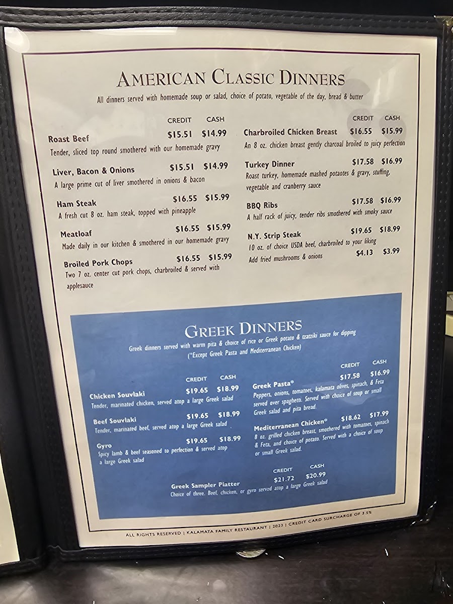 Kalamata Menu